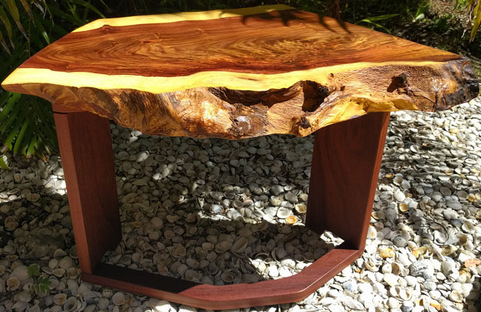 This Indian Rosewood side table with a cantilevered design was really special. The front "Toe" piece on the base was hand carved to match the profile of the exisiting top piece. The beautuful rich grain of the wood looked very three dimensional and the chatoyance (cat's eye like shimmer) was simply fantastic.